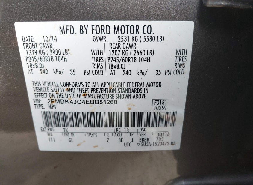 VIN: 2FMDK4JC4EBB51260 · Sayreville, NJ, 08872 · ID Salvage