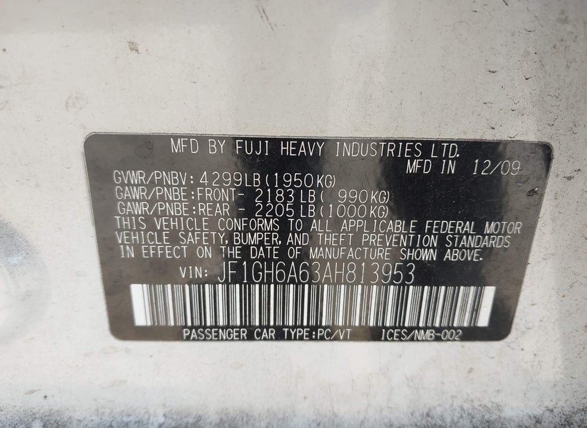 {"StockHash":"44812275","SellingBranch":"PORT MURRAY (NJ)","VINStatus":"JF1GH6A63AH813953 (OK)","VehicleScore":"35","Vehicle":"AUTOMOBILE","VehiclesVehicleLocation":"AT THE BRANCH","AuctionDateTime":"4/23/2026 1:30:00 PM +00:00","Lane":"AVAILABLE TWO DAYS BEFORE SALE","Aisle":"AVAILABLE TWO DAYS BEFORE SALE"}