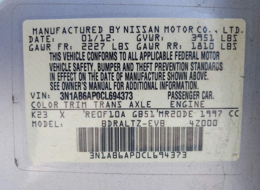 VIN: 3N1AB6AP0CL694373 · York Springs, PA, 17372 · PA Clear