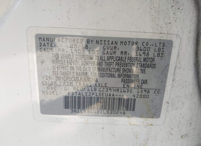 VIN: 3N1CP5CU5JL530248 · Baltimore, MD, 21226 · MD Clear