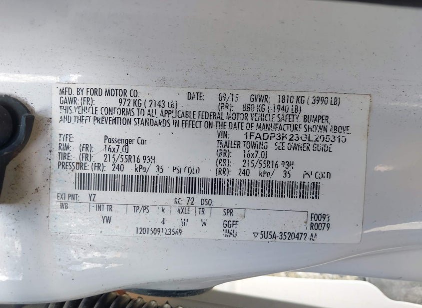 VIN: 1FADP3K23GL205310 · San Antonio, TX, 78224 · TX Clear