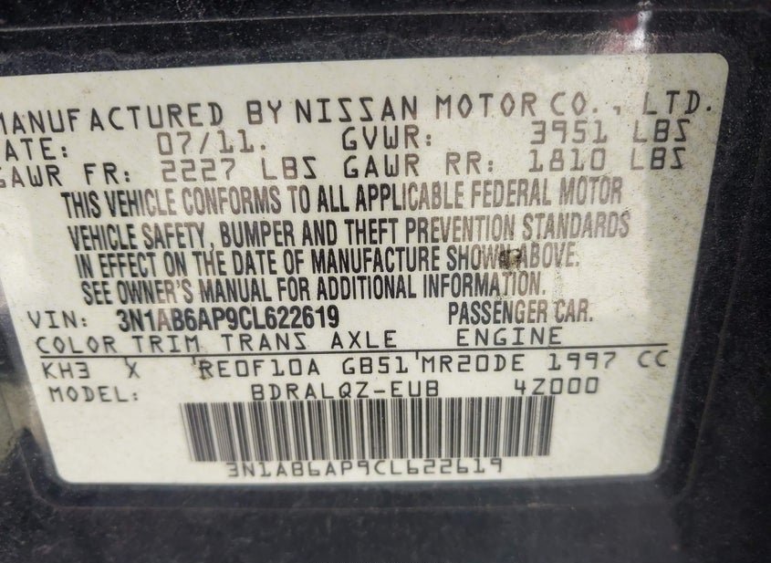 VIN: 3N1AB6AP9CL622619 · WINDER, GA, 30680 · GA CLEAR ACCIDENMT HISTORY