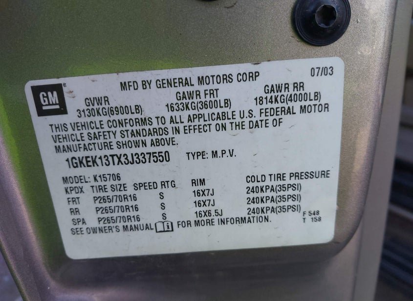 1GKEK13TX3J337550