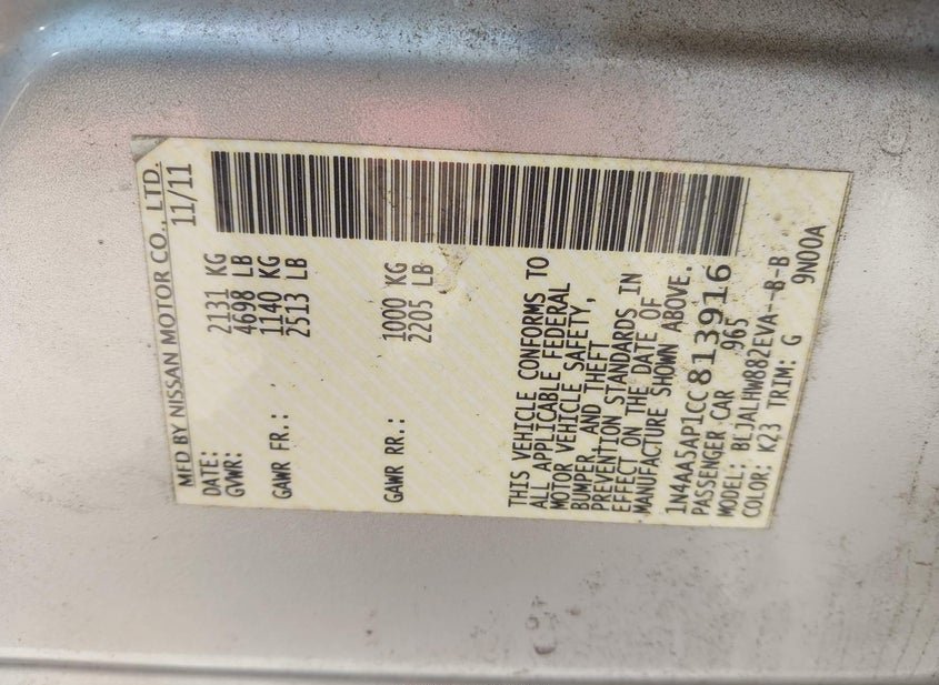 VIN: 1N4AA5AP1CC813916 · Baltimore, MD, 21226 · MD Clear