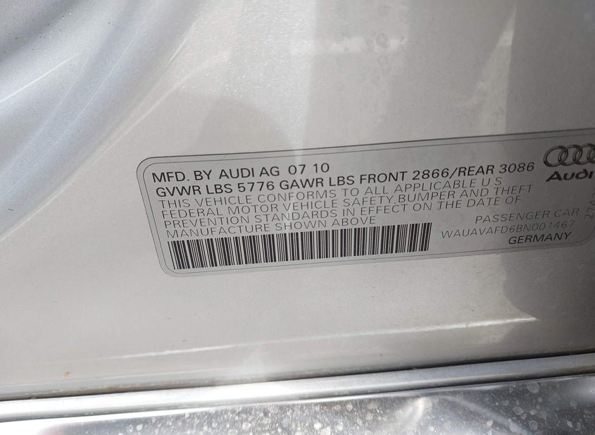 VIN: WAUAVAFD6BN001467 · Woodburn, OR, 97071 · OR Peddle Clear Public-Restricted IF TITLED IN OREGON - TITLE MAY COME BACK AS A SAL