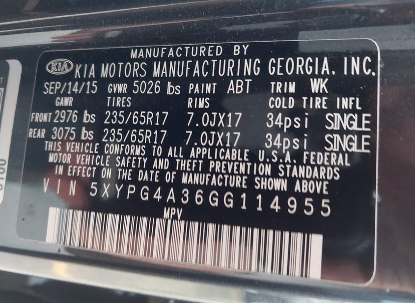 VIN: 5XYPG4A36GG114955 · FREMONT, CA, 94538 · CA CLEAR - DEALER ONLY