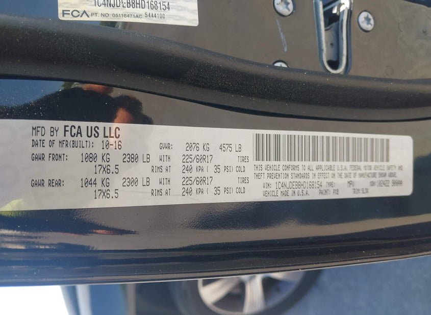 VIN: 1C4NJDEB8HD168154 · Lake City, GA, 30260 · GA Clear NO PREV ACCIDENT REPORTED