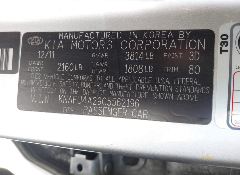 VIN: KNAFU4A29C5562196 · Bay Point, CA, 94565 · CA Clear - Dealer Only DMV $263