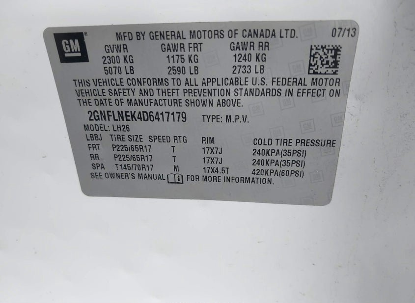 VIN: 2GNFLNEK4D6417179 · EAST WINDSOR, CT, 06088 · MA CLEAR