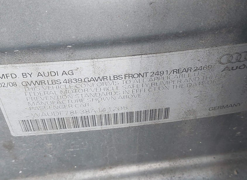 VIN: WAUDF78E38A141205 · Elkton, MD, 21921 · DE Clear