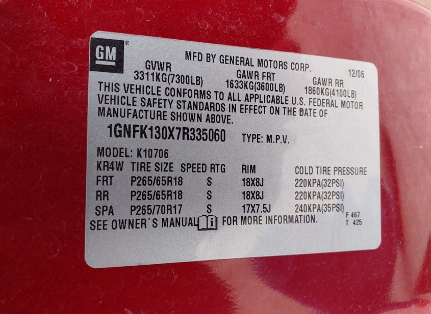VIN: 1GNFK130X7R335060 · Aurora, IL, 60505 · IL Clear