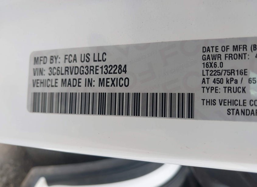 VIN: 3C6LRVDG3RE132284 · Houston, TX, 77032 · TX ENTERPRISE VEHICLES CLEAR ONLY