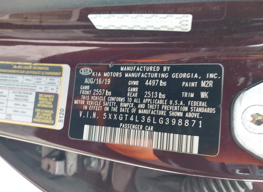 VIN: 5XXGT4L36LG398871 · Conshohocken, PA, 19428 · PA Salvage