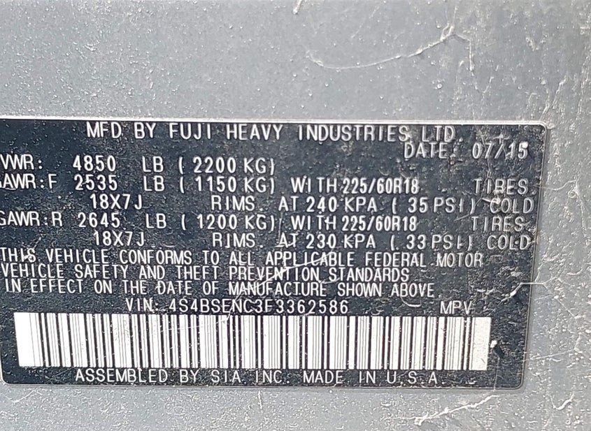 2015 Subaru Outback 3.6L