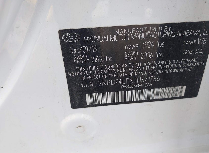 VIN: 5NPD74LFXJH371756 · Sussex, WI, 53089 · WI Clear