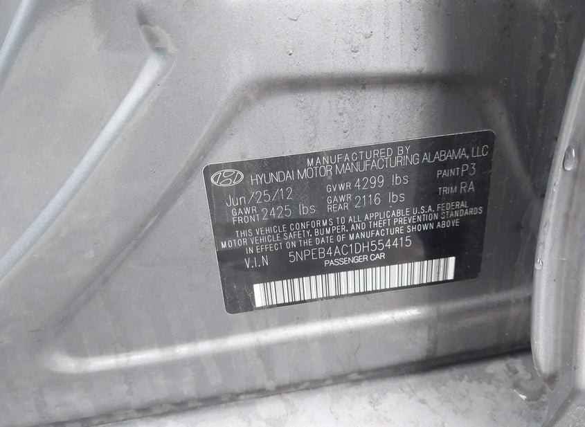VIN: 5NPEB4AC1DH554415 · Morganville, NJ, 07751 · NJ Clear