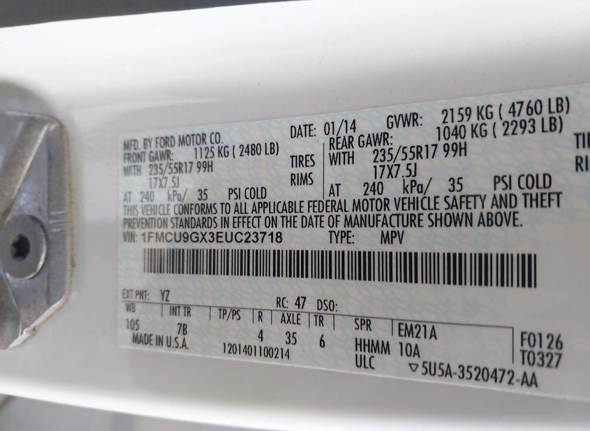 VIN: 1FMCU9GX3EUC23718 · Indianapolis, IN, 46217 · IN Clear