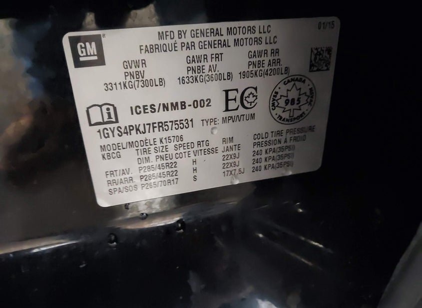 VIN: 1GYS4PKJ7FR575531 · Saint Paul, MN, 55117 · MN Salvage