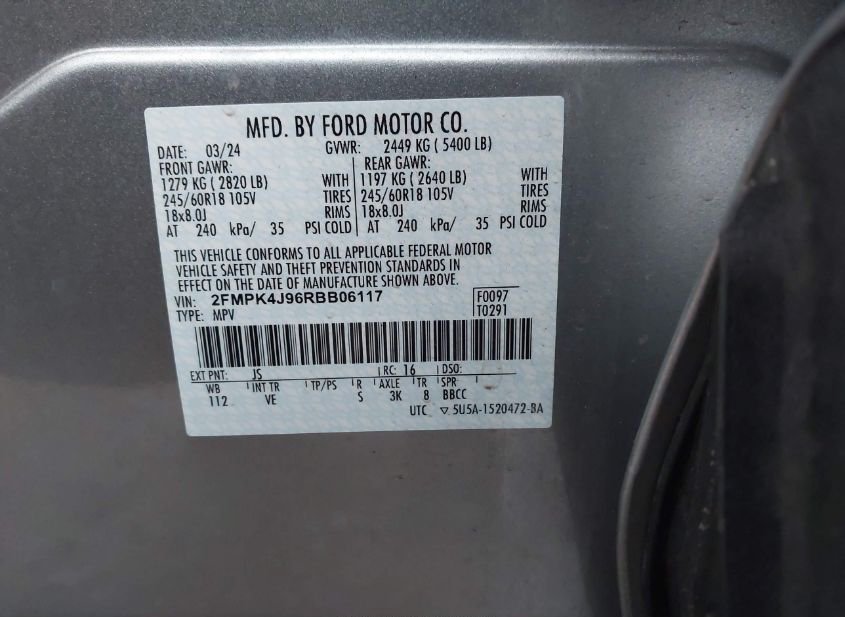 VIN: 2FMPK4J96RBB06117 · Turnersville, NJ, 08012 · NJ Salvage
