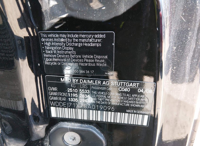 VIN: WDDEJ71X78A019096 · Brandywine, MD, 20613 · MD Salvage - Greater Than 75