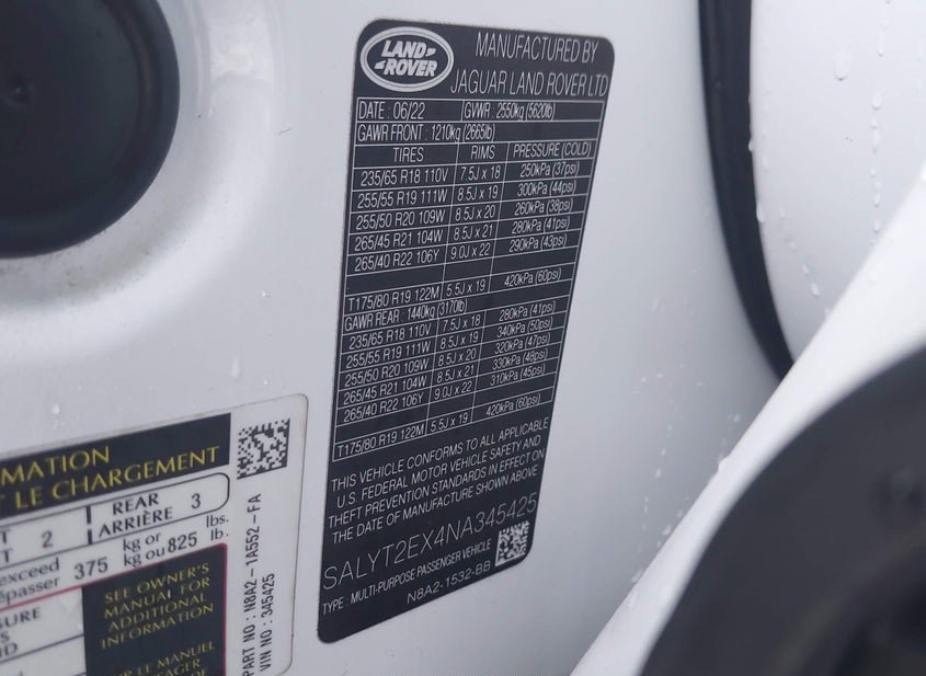 VIN: SALYT2EX4NA345425 · Oklahoma City, OK, 73121 · OK Salvage