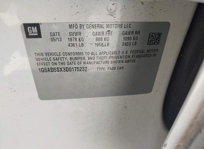 VIN: 1G6AD5SX3D0175237 · Wilmer, TX, 75172 · TX Salvage PRE BRAND AS REBUILT SALVAGE