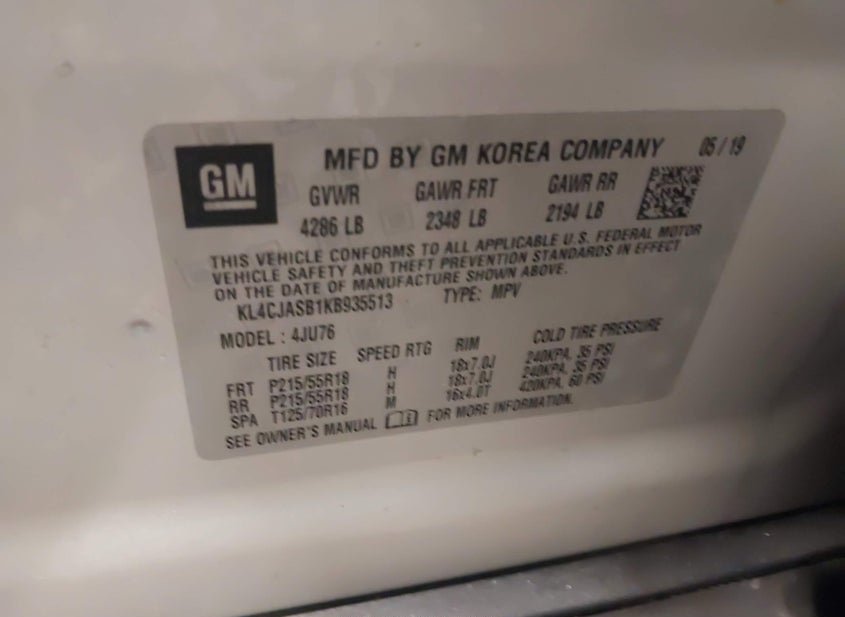 VIN: KL4CJASB1KB935513 · Bergen, NY, 14416 · NY Mv-907A