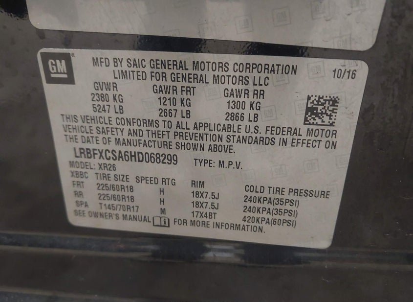 VIN: LRBFXCSA6HD068299 · Rock Tavern, NY, 12575 · NY Mv-907A