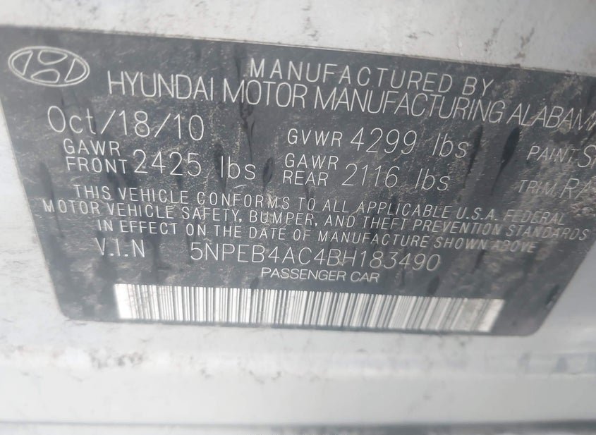 VIN: 5NPEB4AC4BH183490 · Ogden, UT, 84401 · UT Clear
