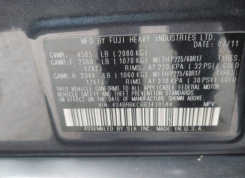 VIN: 4S4BRBKC6B3438584 · Puyallup, WA, 98374 · WA Clear DEALER ONLY