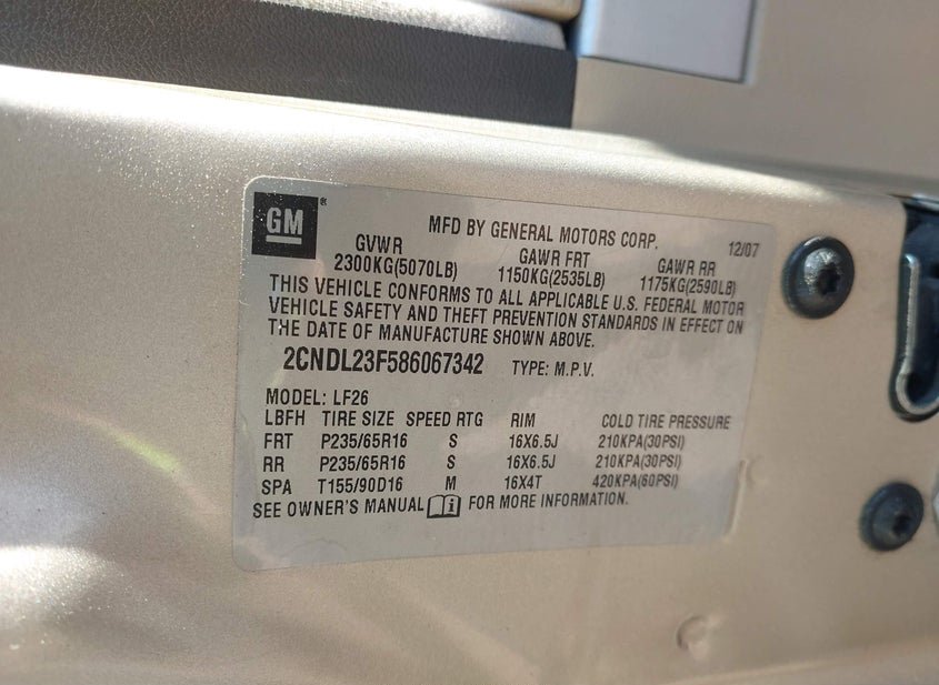 VIN: 2CNDL23F586067342 · Bessemer, AL, 35022 · AL Clear