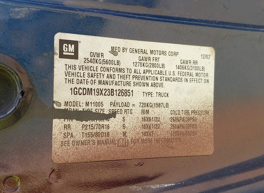 VIN: 1GCDM19X23B126851 · Brandywine, MD, 20613 · VA Clear