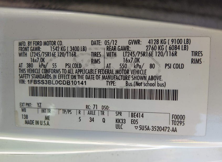 VIN: 1FBSS3BL0CDB10141 · North Hollywood, CA, 91605 · CA Clear - Dealer Only